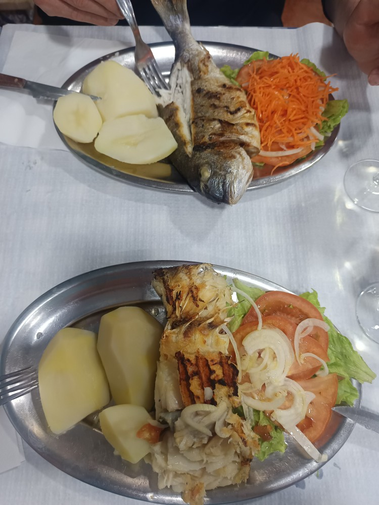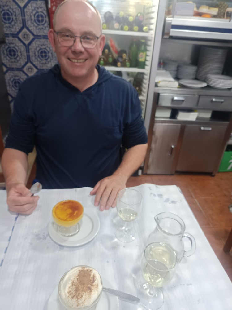 Am Ende unserer Reise sind wir drei Tage in Lissabon. Wir erlaufen hier mehr Höhenmeter als auf dem Fischerweg, sind gefühlt 10000 Stufen hoch- und runtergelaufen, aber die vielen Aussichtspunkte sind die Anstrengungen schon wert. Bei den meisten gibt es auch Bewirtung, wo es zumindest Getränke gibt. Essen kann man in Lissabon hervorragend, besonders natürlich Fisch. In einem unserer bevorzugten Restaurants haben wir inzwischen auch die Nachtische alle durch. Wir haben auch die Kombination von 2021 nochmal probiert, an den Rezepten wurde nichts geändert. Sehr lecker.
