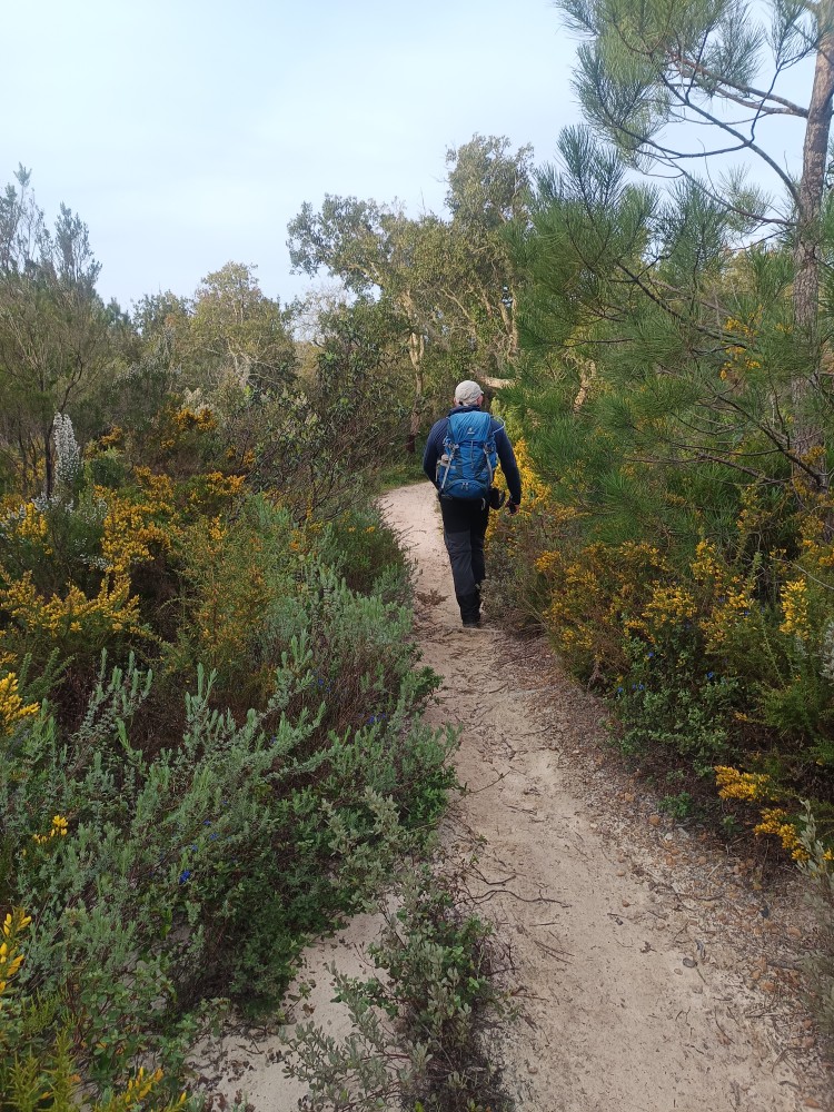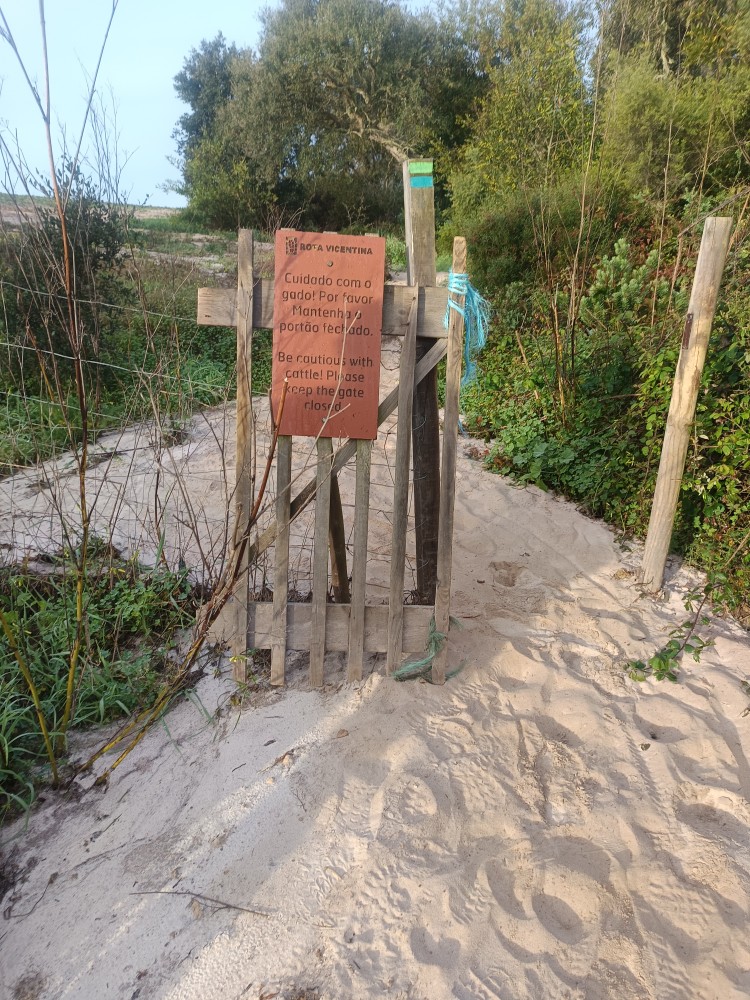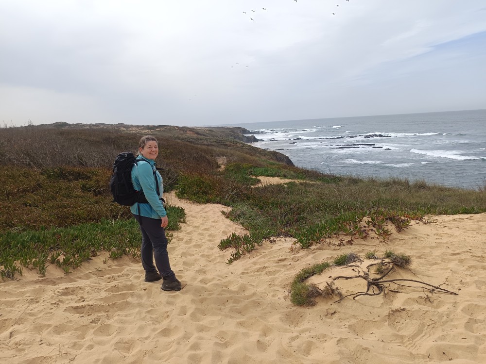 Die zweite Etappe Fischerweg war heute nur 16 km lang, daher haben wir sie durch Verlaufen etwas verlängert. Irgendwo haben wir etwa 3 Kilometer vor Almograve eine Abzweigung verpasst und mussten uns dann mit Google Maps durch die Dünen von Almograve schlagen. Da war zwar auch ein Weg, aber nicht der offizielle Wanderweg. Es war eh viel tiefer Sand heute, da kommt es auf etwas mehr auch nicht mehr an. Und kälter war es heute. Gestern wurde es ja sonnig und bis zu 22 Grad warm. Heute ließ die Sonne sich seltener sehen und es waren maximal 15 Grad. Es sind wenige Wanderer unterwegs und hier in Almograve gibt es in der Nebensaison auch nicht viele Angebote. Der tolle Strand ist noch nicht so wirklich nutzbar, die Surfer kommen auch erst später. Die sind zwar cool, aber denen ist eben auch noch cool.